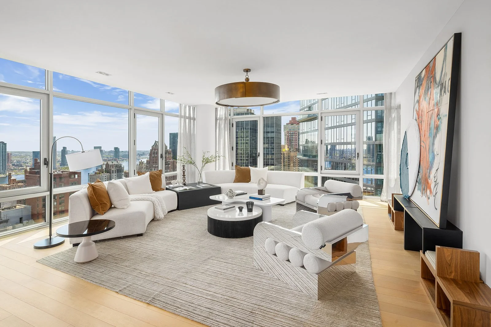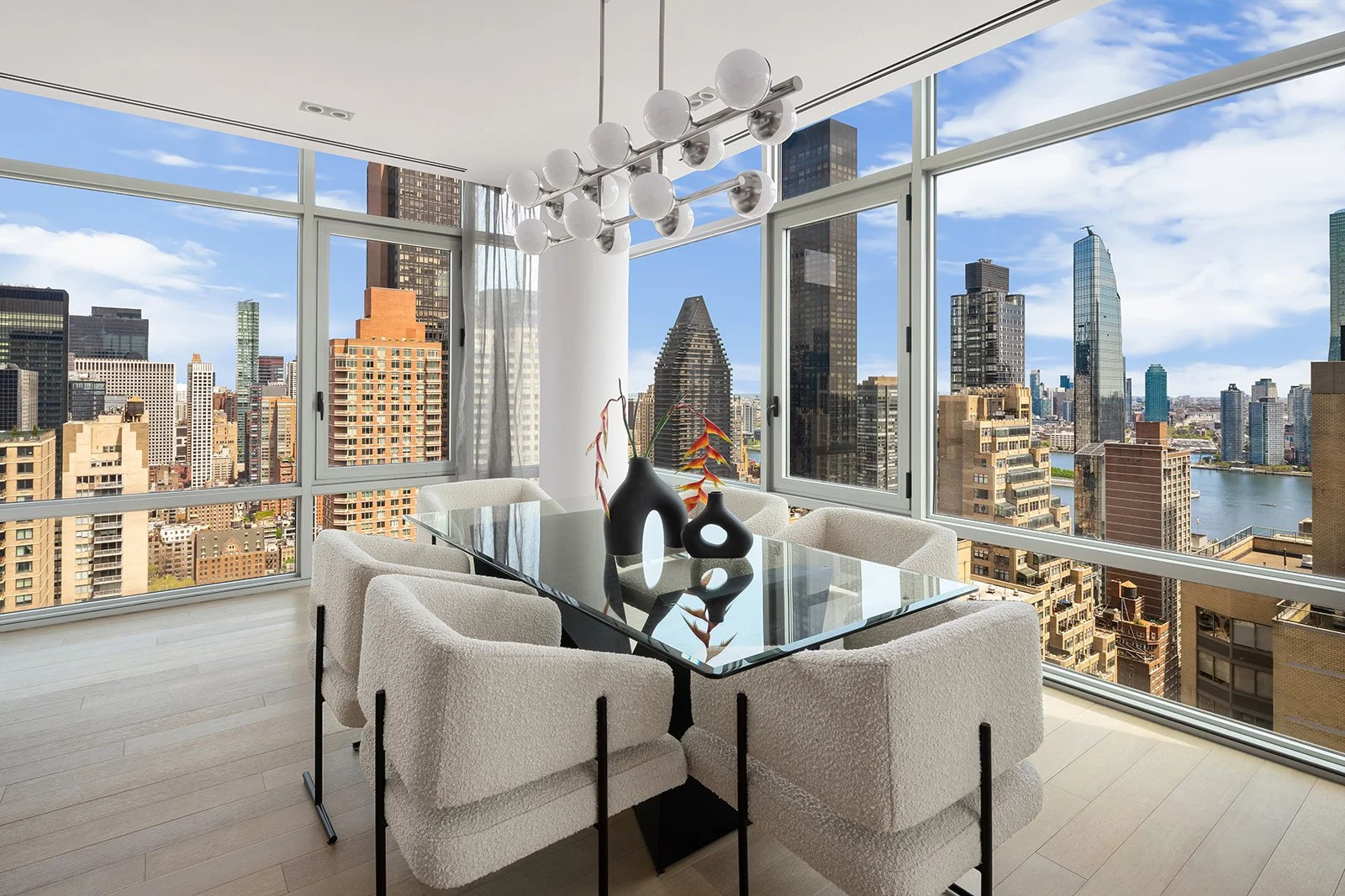 Welcome to this expansive full-floor condo with 3 bedrooms, 3.5 bathrooms, and stunning views of the Manhattan skyline and the East River. Floor-to-ceiling windows stretch wall to wall and let in northern, southern, and eastern light. Beautiful white oak floors run throughout the home, and a state-of-the-art Crestron home automation system controls motorized curtains, audio/visual systems, and central heating and cooling.